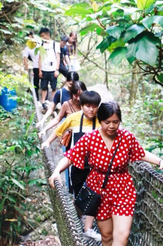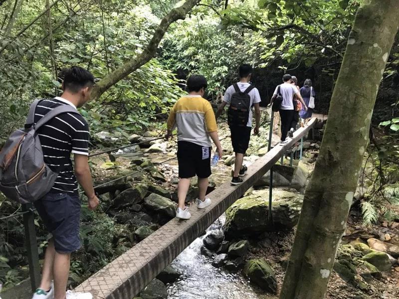 一轮与水搏击之后,我们沿溪而上进行一次胆战心惊的探险,过浮桥、乘滑索、爬软梯、蹬铁索、攀山岩、穿密林、沿途清澈见底的小溪,蝉鸣声声,掩盖了城市的喧嚣,也让我们沉下心来感受大自然的恩赐。